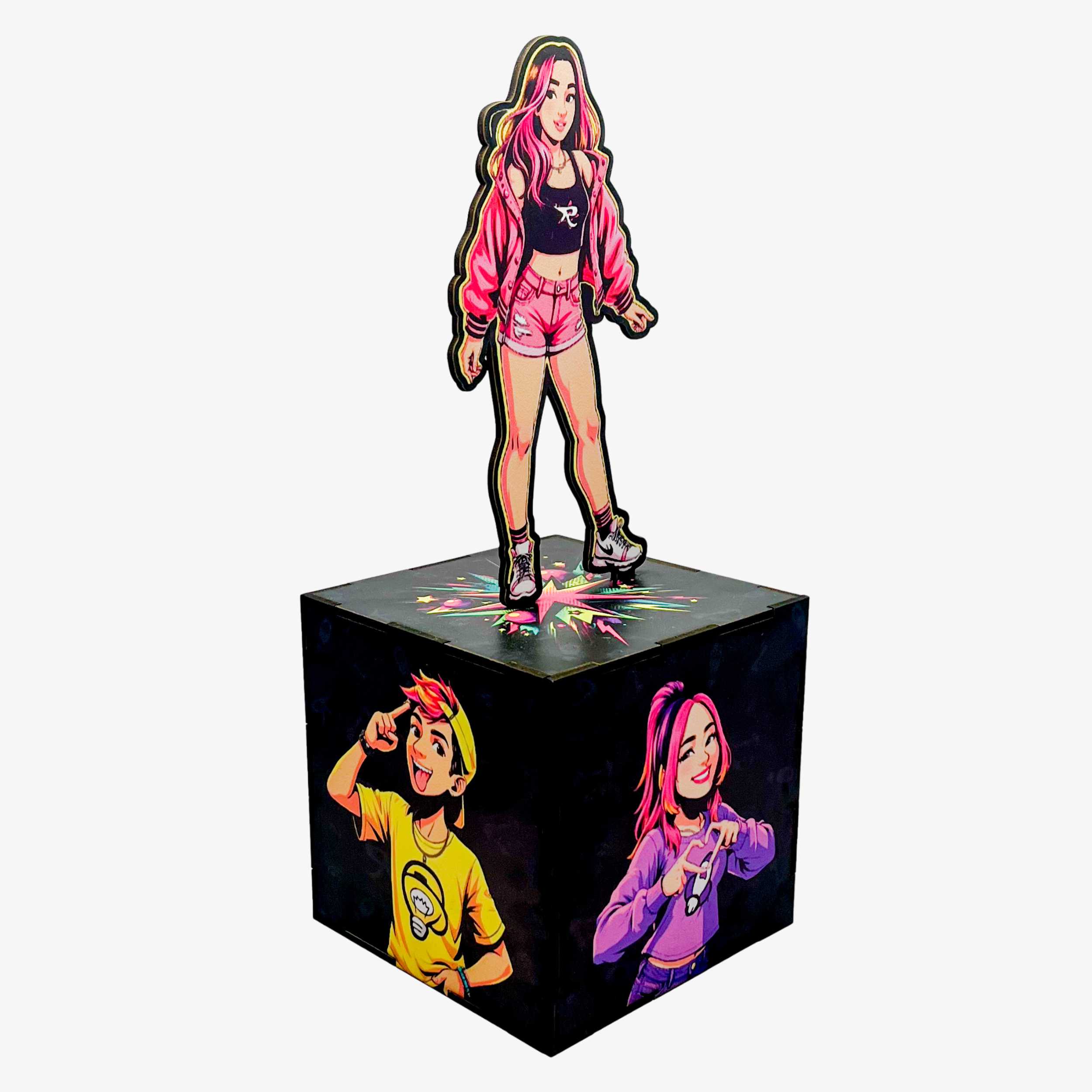 Encante com esse item versátil e cheio de personalidade! O cubo porta-treco em MDF adesivado é perfeito para decorar festas temáticas, organizar itens pequenos ou dar aquele toque divertido na sua mesa.